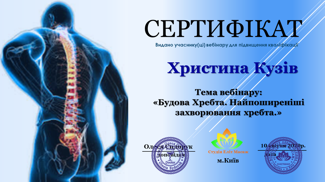 Дипломи та сертифікати спеціалістів «Студії Еліт Масаж»